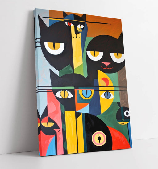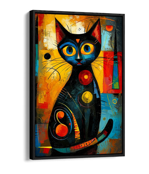 This abstract black cat art canvas wall art is a vibrant, colorful canvas print designed to bring modern cat artwork charm and Kandinsky style deco...