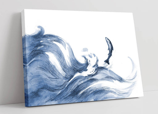 Canvas Wall Art – Watercolour Blue Waves & Fish Print | Handmade, Ready to Hang