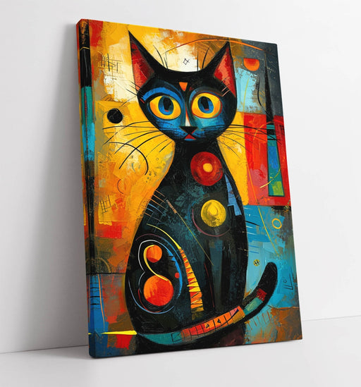 Abstract Black Cat Art - Colorful Canvas Wall Art | Kandinsky Style Decor Print