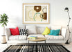 Abstract Framed Poster - Brown Abstract Shapes Bedroom Wall Art with Woodgrain Frame