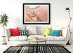 Framed Wall Art - Abstract Marble Print Pink Background With Woodgrain Frame