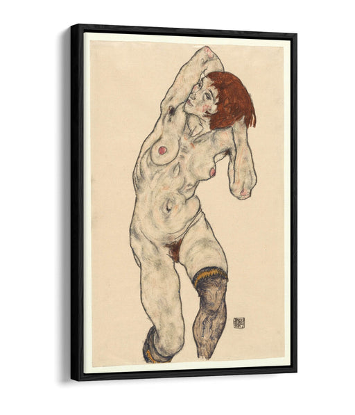 Canvas Wall Art - Egon Schiele Nude With Stockings | Float Effect Print On MDF Frame