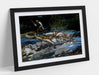 Framed Wall Art Poster - George Benjamin Luks Trout Fishing Print With Woodgrain Frame