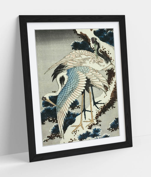 View full detailsThis framed art poster showcases the iconic 'Katsushika Hokusai Cranes On Snow Covered Pine Print,' expertly printed on heavy matte paper using arc...