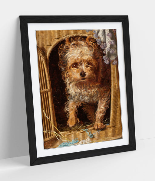 This framed art poster features the classic 'Darby in Basket' wall art print by Frederick Sandys, expertly crafted to bring charm and warmth to you...
