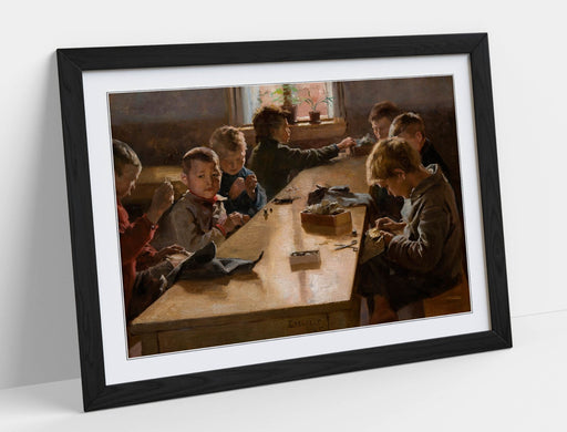 This framed art poster features Albert Edelfelt's iconic painting, The Boy's Workhouse, presented in a natural wood frame that enhances any room wi...