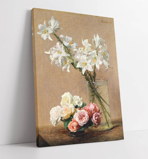 View full detailsThe Float Effect Canvas Art - Henri Fantin-Latour Roses And Lilies Print On Premium Frame is a stunning floral canvas artwork designed to elevate y...