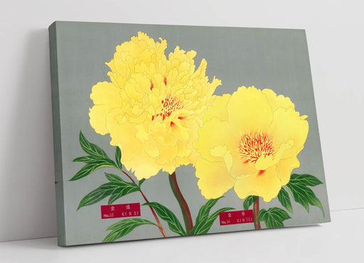Vintage Canvas Wall Art – Peony Blossom Print Yellow Flower Artwork Ready to Hang