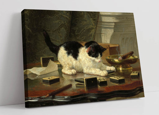 Kitten Playing Canvas - Handmade Canvas Wall Art Painting With Premium Varnish Finish