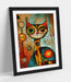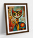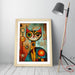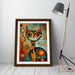 Framed Wall Art - Cool Cat Abstract Wall Decor With Woodgrain Frame Print
