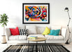 Framed Wall Art Poster – Abstract Multi Colour Kandinsky Style Print with Woodgrain Frame