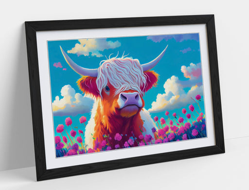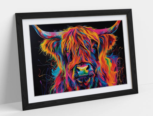 Highland Cow Wall Art – Framed Vibrant Animal Poster With Natural Wood Frame