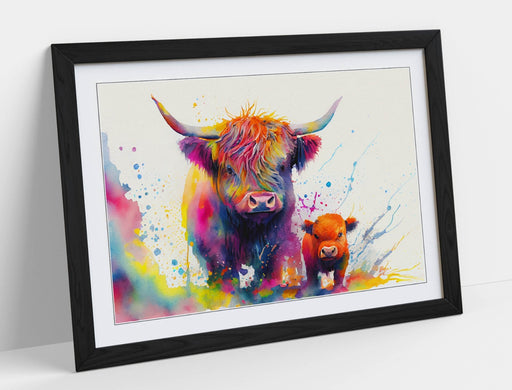 Framed Wall Art - Colorful Highland Cow Print Mother Child Poster, Handmade