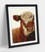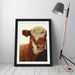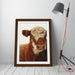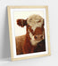 Framed Wall Art - Brown White Cow Poster With Rustic Wood Frame, Matte Paper Print