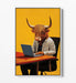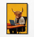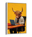 Canvas Wall Art - Anthropomorphic Highland Cow With Laptop | Float Effect, Handmade UK