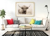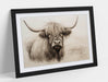 Highland Cow Wall Art – Framed Charcoal Sketch Print on Matte Paper, Handmade UK