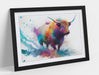Highland Cow Wall Art – Framed Watercolour Animal Print with MDF Wood Frame