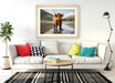 Highland Cow Wall Art - Framed Funny Animal Poster with Welly Boots Decor