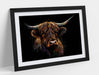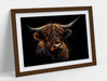 Highland Cow Wall Art - Framed Splash Art Print With Black Background Decor