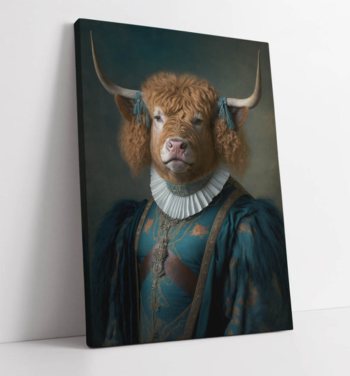 View full detailsThis Highland Cow Canvas Art is a handmade canvas print that brings a unique charm to any room, featuring an anthropomorphic cow in a suit that add...