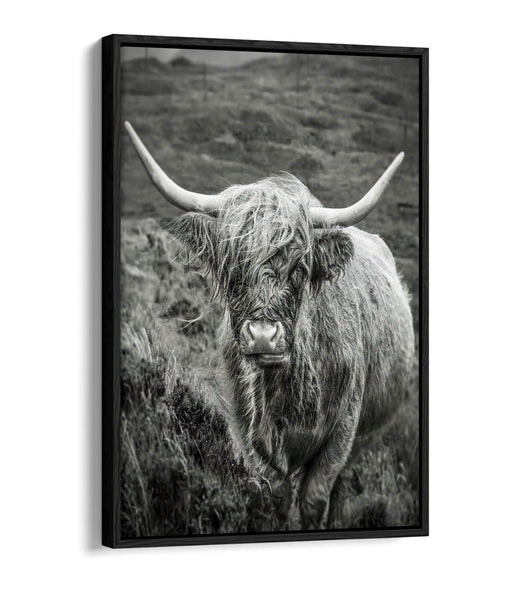 Highland Cow Canvas | Black and White Float Effect Wall Art Print - Handmade UK