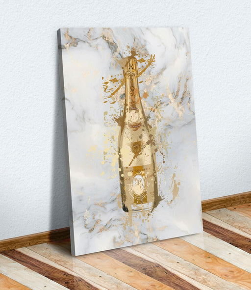 Canvas Wall Art – Marble Champagne Bottle Print | Deep Framed Handmade Artwork