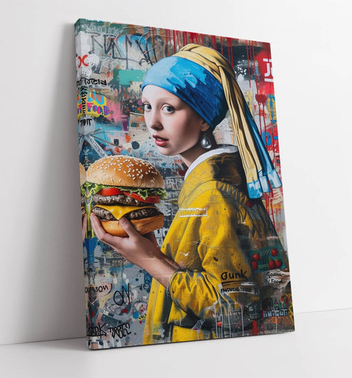 Canvas Wall Art – Girl With A Pearl Earring Burger Graffiti Print On Archival Grade Canvas