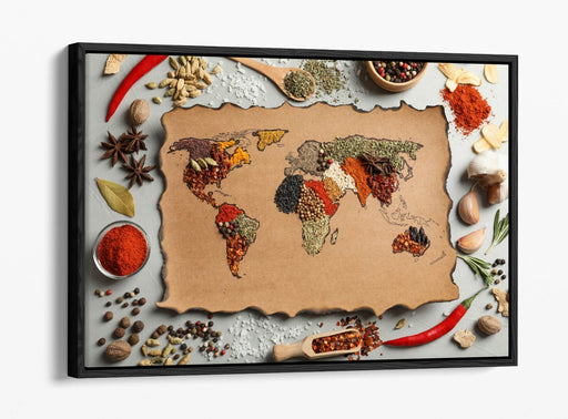 Canvas Wall Art – Spices Kitchen Art With Herbs World Map | Float Effect Print
