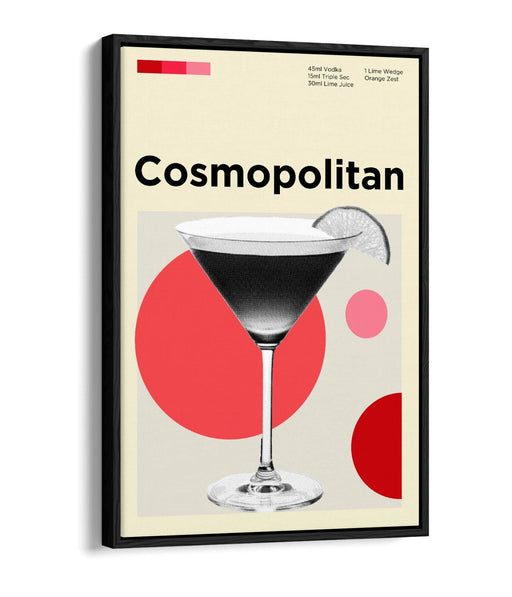 Canvas Wall Art - Cosmopolitan Cocktail Poster Print | Funky Floating Frame Decor