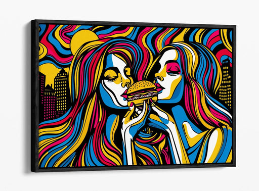 Canvas Wall Art - Contemporary Float Effect Print With Women Burger Artwork On 30mm Deep Frame