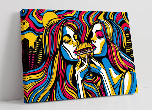 Canvas Wall Art - Multi Colour Women Burger Print | Contemporary Wall Decor