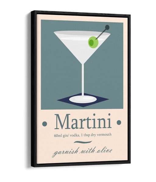 Martini Cocktail Poster - Float Effect Frame Canvas Wall Art Print | Handmade UK