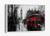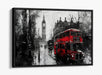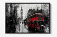 Black And White Cityscape - Red Bus Art Print | Float Effect Canvas Wall Art