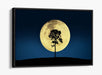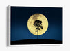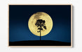 Canvas Wall Art - Tree Silhouette Print With Big Moon | Blue Night Sky Decor