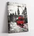 Cityscape Canvas Art - Black and White Urban City Canvas with Red Bus Wall Decor