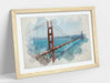 - Framed wall art featuring Golden Gate Bridge art in watercolour painting style