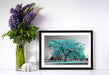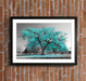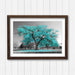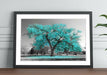 Turquoise Tree Wall Art - Large Framed Picture Print with Teal Leaves Poster