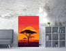 The Sunset Safari Canvas is a handmade canvas print designed to bring vibrant African landscape art into your living space, creating a warm and inviting atmosphere. This sunset safari canvas features a detailed safari tree illustration that enhances any room with nature themed decor, delivering a perfect blend of modern wall decoration and timeless beauty for your home or bedroom decor print.