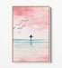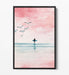 Canvas Wall Art – Minimalist Silhouette Surfer Pink Beach Float Effect Print