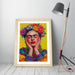 Frida Kahlo Wall Art – Colourful Portrait Print With Natural Wood Frame
