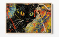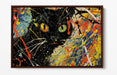 Black Cat Canvas Art - Jackson Pollock Style Float Effect Modern Cat Artwork