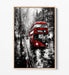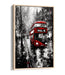 Canvas Wall Art - Black White Cityscape Red Bus Print | Handmade Premium Float Effect