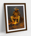 Framed Wall Art Cowboy Smoking By Campfire - Rustic Woodgrain Frame Print