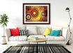 Framed Poster Print - Red Sun Abstract Wall Art With Woodgrain Frame Design