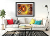 This framed poster print features a striking red sun abstract wall art design, perfect for adding a bold focal point to any room. Handmade in the UK, this modern framed artwork delivers vibrant color and lasting quality, transforming your space with contemporary wall picture style. Printed on heavy matte paper using archival ink print technology, this decorative bedroom print offers fade-resistant visuals that brighten your walls for years.