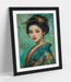 Framed Wall Art - Beautiful Geisha Art Print With Wood Grain Frame, Ready To Hang