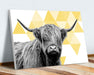 Highland Cow Canvas - Handmade Geometric Wall Art Print | Yellow Grey Artwork