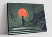 Samurai Canvas Art - Handmade Forest Wall Decor With Red Moon Artwork Print