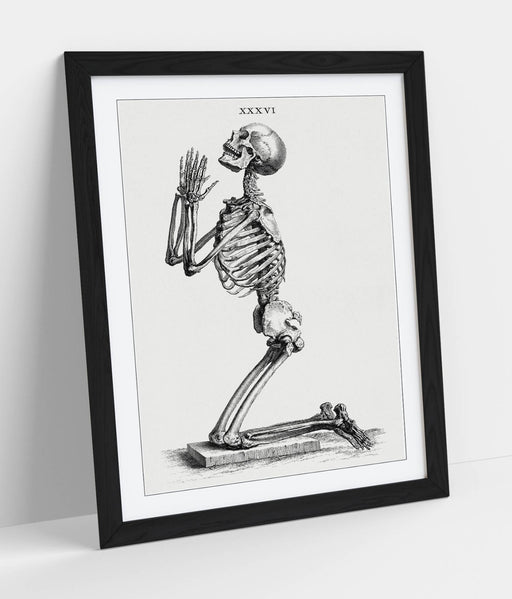 View full detailsThis framed skeleton wall art features the iconic William Cheselden praying skeleton print, designed to bring a unique blend of classic anatomy art...