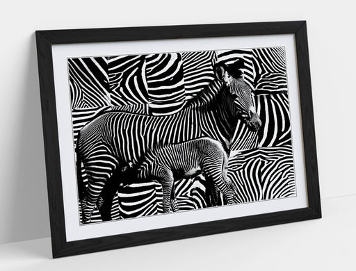 Zebra Stripe Wall Art – Handmade Framed Animal Print With Woodgrain Frame